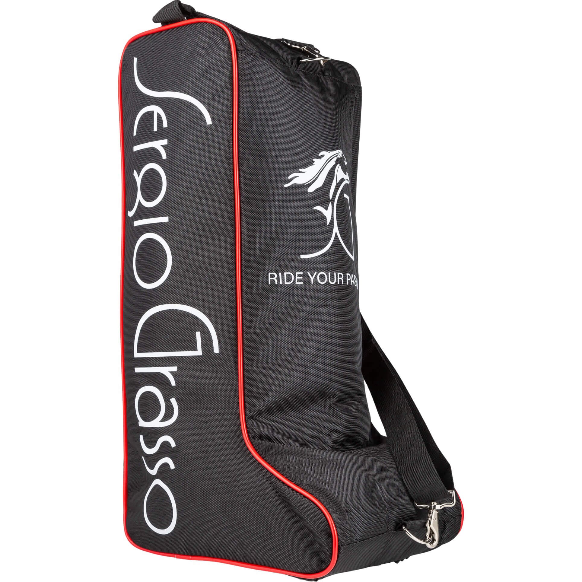 Sergio Grasso Reitstiefel Tasche. Leicht, aus beschichtetem Gewebe, mit mehreren Zubehörtaschen. Verstellbare Umhängeriemen maximal 54cm hoch incl. Dressurbogen. Der perfekte schutz für Ihre Sergio Grasso Reitstiefel.