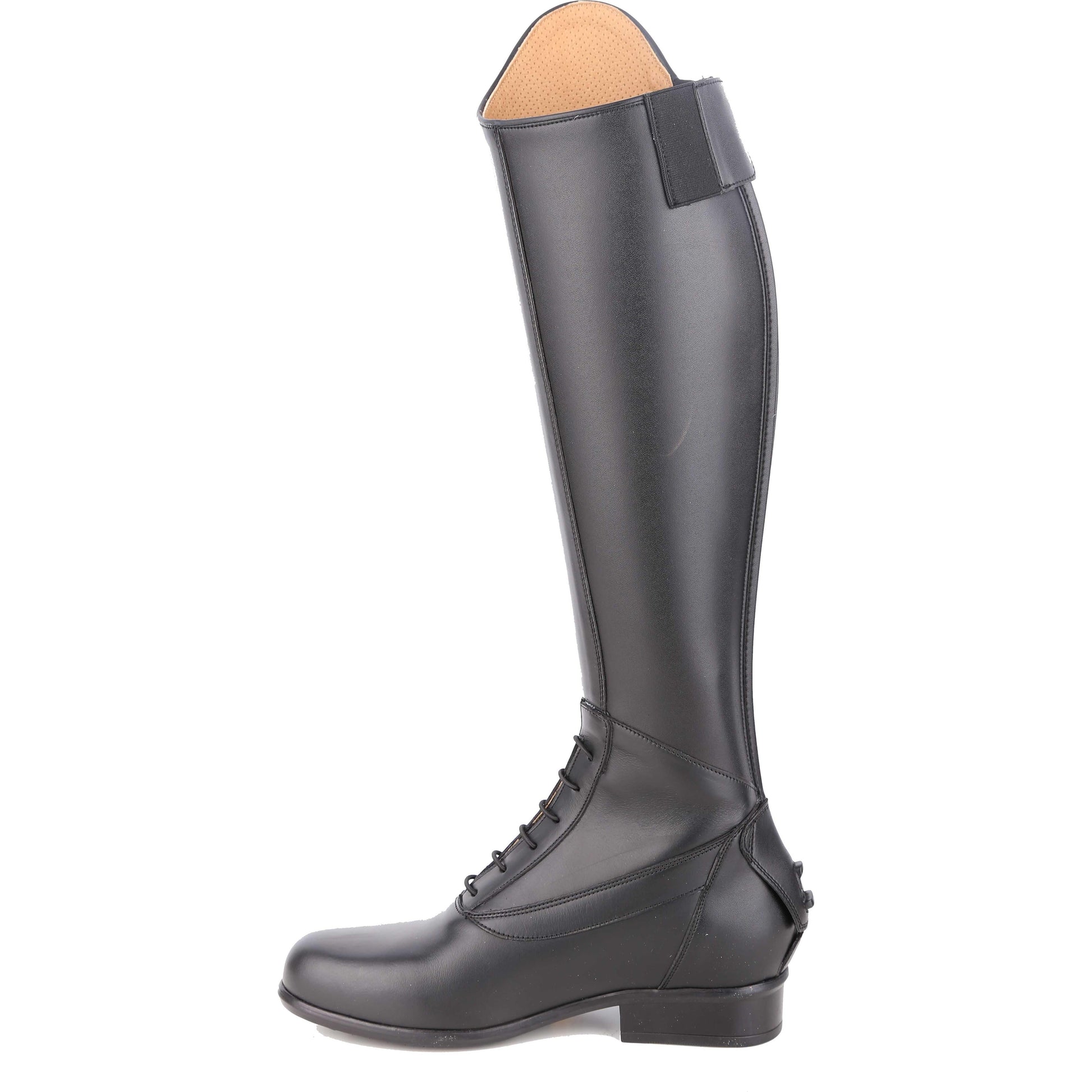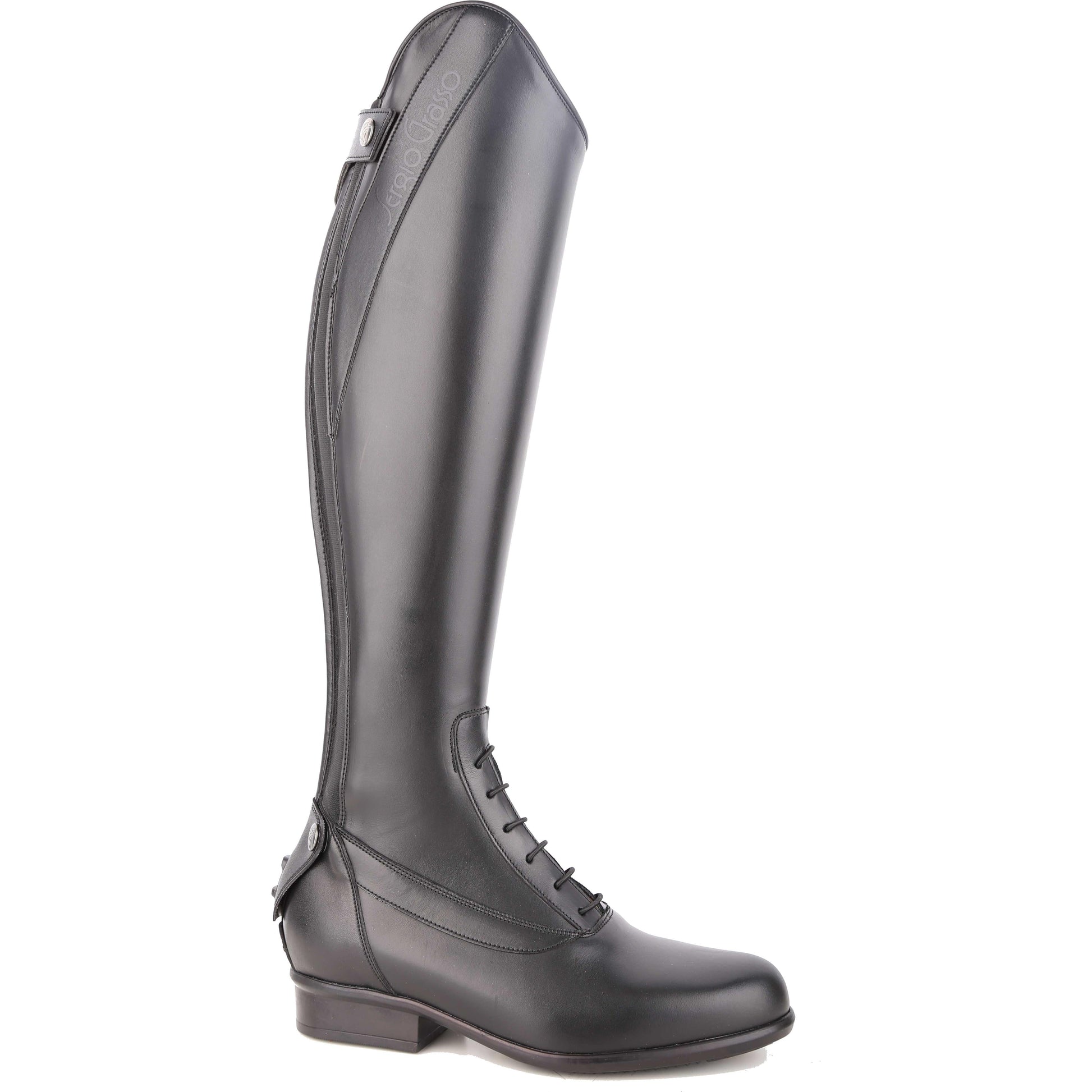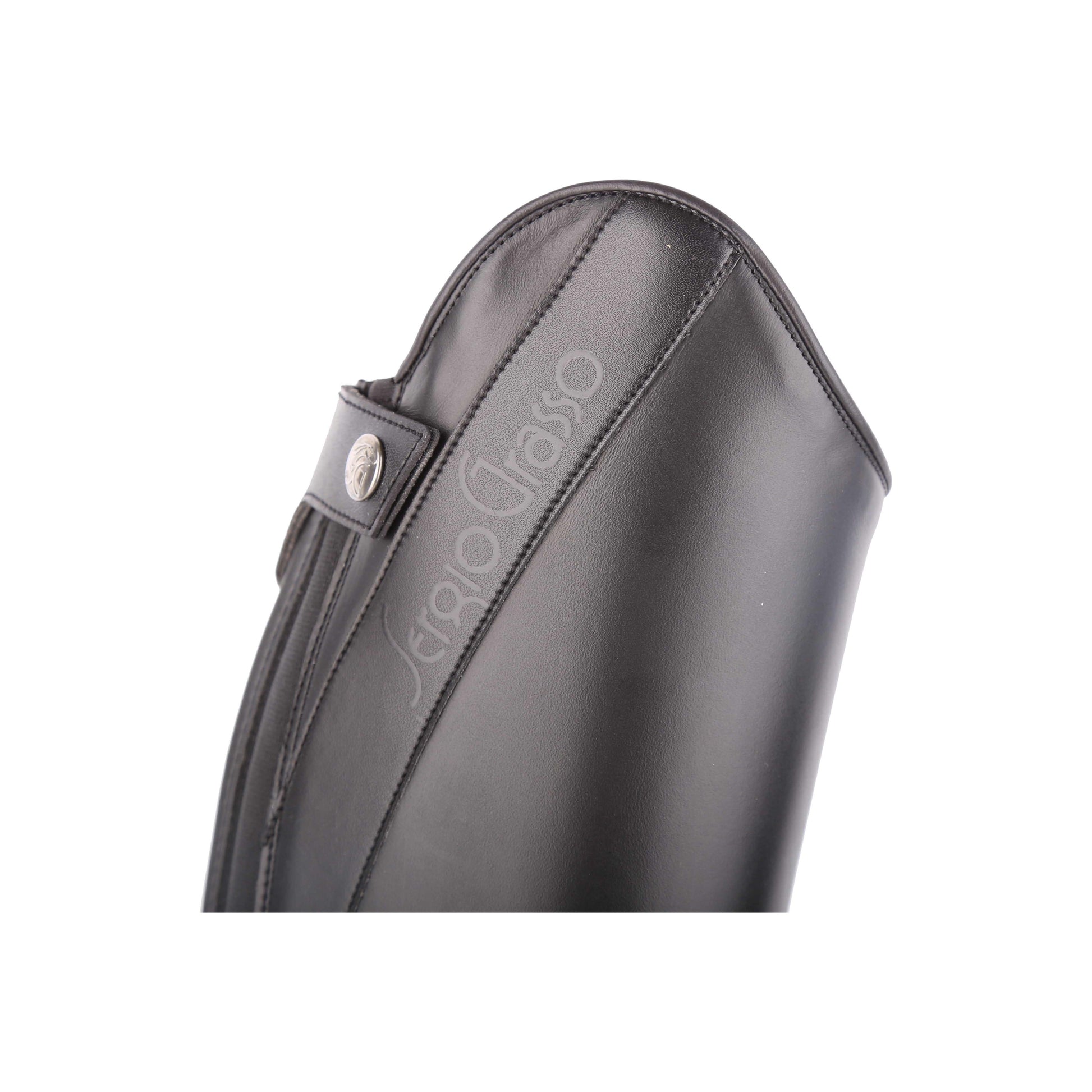 Sergio Grasso Springstiefel 2023 (Lagerware) Der neue Sergio Grasso Springstiefel mit dem absolut besten Preis- / Leistungsverhältnis: Die Qualität dieses Stiefels ist absolut hochwertig, hier wurden nur die besten Materialien verwendet (Kalbsleder, rahmengenähte Vibram Gummisohle, ProComf Fußbett). Für diesen Preis und die Qualität ist der Stiefel absolut unschlagbar. Der Reitstiefel besitzt hinten einen 9er YKK-Reißverschluss mit Reißverschlussschutz und doppeltem Sporenhalter, mit Schnürung mit Elastikeinsatz für eine optimale Passform. Außerdem besitzt der Stiefel das Ultraleder auf der Schaftinnenseite für eine super Haftung am Sattel. Da das Leder sehr weich ist empfohlen als Springreitstiefel. Durch einen einzigartigen Elastikeinsatz an der Rückseite haben Sie hier die pefekte Passform eines super engen Maßstiefels.