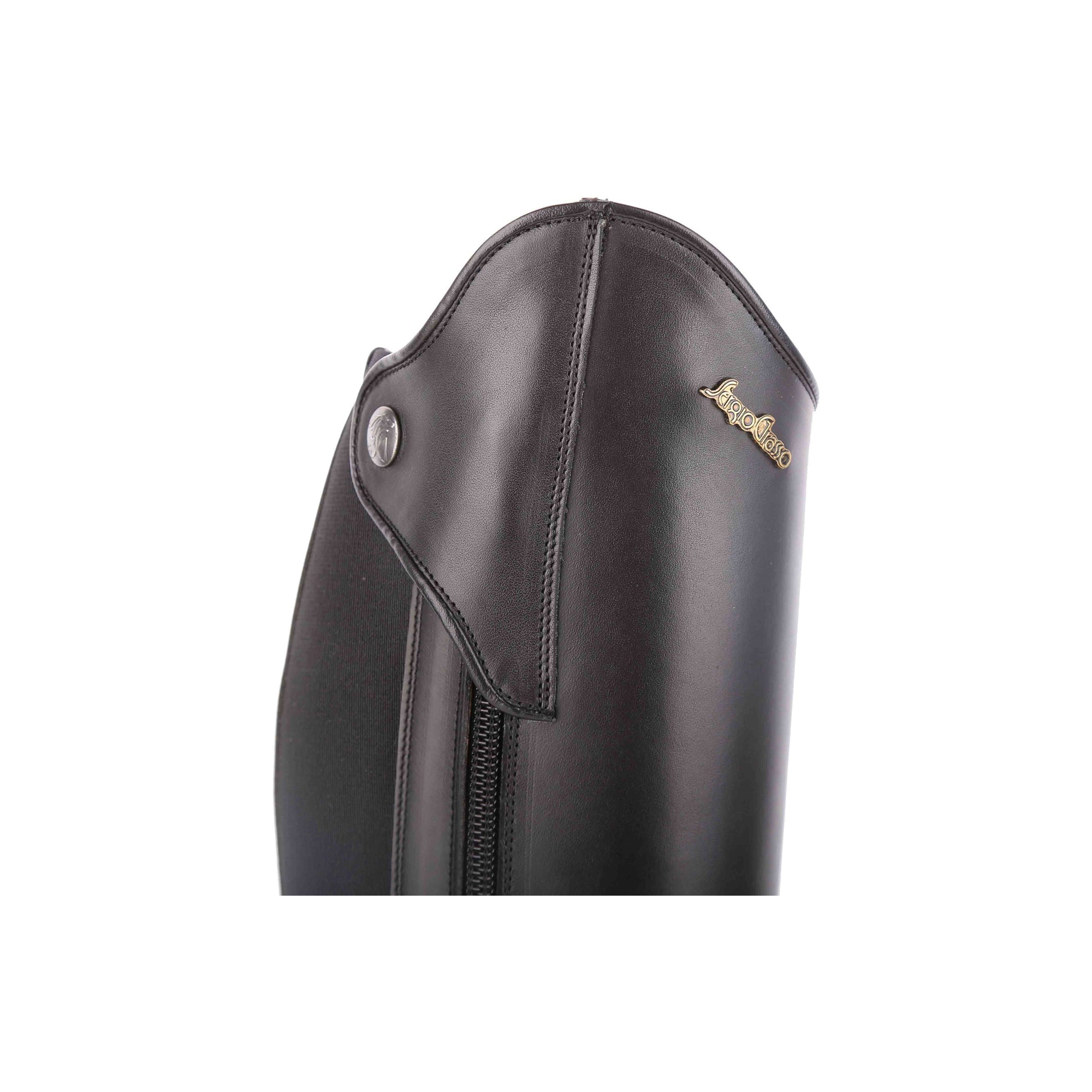 Sergio Grasso Incanto Größe 36 N (42/34) Hierbei handelt es sich um einen Springstiefel von Sergio Grasso. Er ist aus hochwertigem Narbenkalbsleder hersgestellt und besitzt einen seitlich angebrachten Reißverschluss. Er ist sehr weich und beqem zu tragen und hat keine Außenversteifung. Als Extras hat der Stiefel einen Sporenhalter sowie einen Druckknopfverschluss. 1x Sergio Grasso IncantoSchuhgröße: 36Schafthöhe am Hinterriemen ohne Absatz: 42cmWadenumfang: 34cmohne Schnürungmit Sporenhalter Sohle in schwarzStoßdämpfende ProComf Sohle