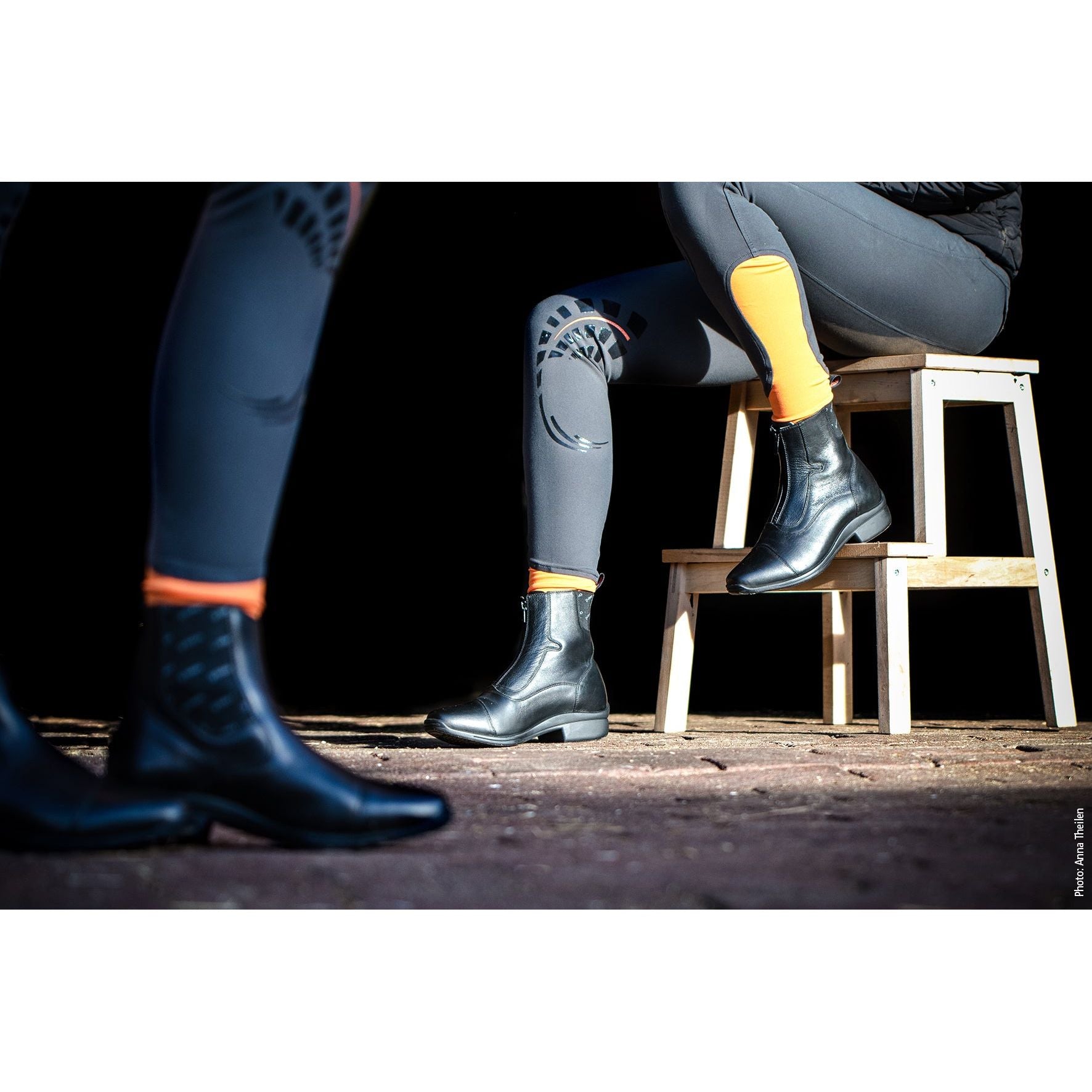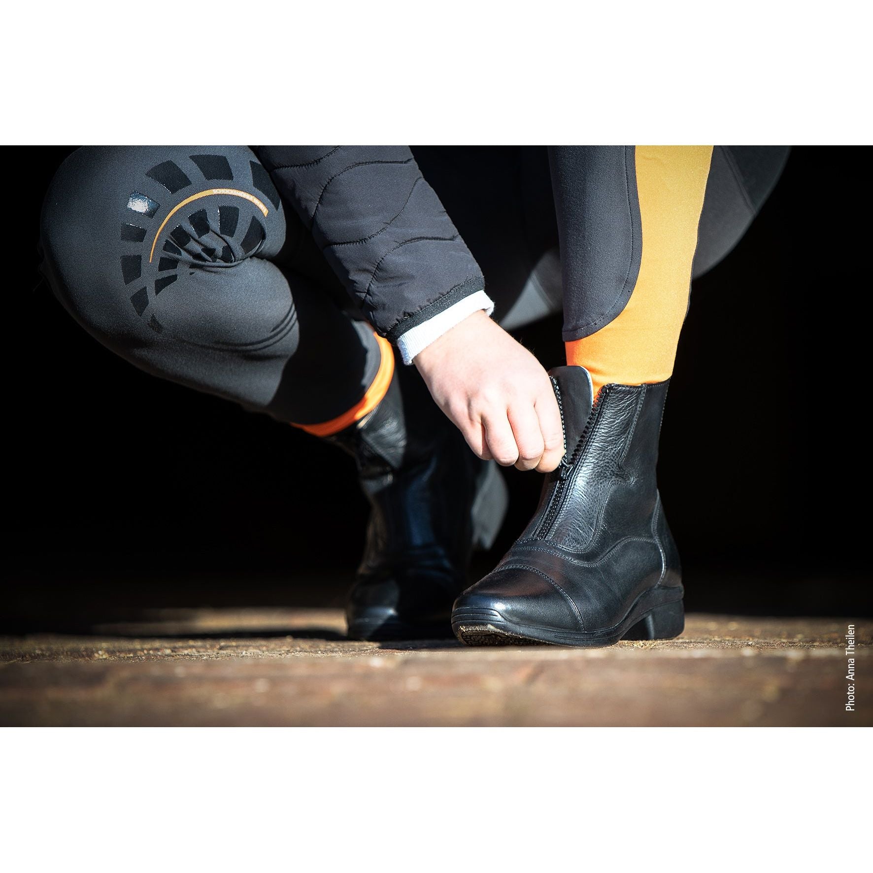 Tonics Rocket Reitstiefelette in schwarz. Die sportliche Stiefelette „ROCKET“ mit Front-Reißverschluss überzeugt durch außergewöhnliche Optik. Durch die interessante Nahtführung und den Ledermix erfüllt sie alle Ansprüche an einen sportlichen Reitschuh.Das hochwertige Lederfutter, die gepolsterte Innensohle sowie die solide Außensohle sorgen zusätzlich für einen exzellenten Tragekomfort. Stark beanspruchte Bereiche der TONICS Stiefelette werden durch einen Vorder- und Hinterkappenschutz geschützt. hochwertiges Gebrauchsleder im Ledermix Innenfutter aus Kalbsleder gepolsterte Innensohle Vorder- und Hinterkappe gepolsterte, breite Zunge abriebfeste, rutschfeste und nicht abfärbende Außensohle schmale elastische Einsätze YKK Reißverschlüsse Zugschlaufe Sporenhalter erhältlich in der Farbe schwarz